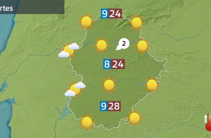 Todo con ambiente despejado y alguna nubes alta asomando por la tarde hacia el oeste de la región. Las máximas empiezan a subir pero será poco apreciable. Sí llegaremos en más de una localidad del suroeste hasta los 28 ºC. En el resto por debajo de los 26 ºc, y no pasaremos de los 22 ºC en zonas más altas de sierra.