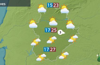 La probabilidad de tener precipitaciones será baja durante buena parte de la jornada. Todavía al inicio de la mañana los chubascos caerán de forma intermitente en el norte y este de la región. Pero, al igual que hoy, de media mañana en adelante desaparecerán con una tarde tranquila y más soleada en la mitad sur. Las temperaturas se quedarán sin cambios.