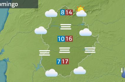 La jornada del domingo comenzará con brumas y bancos de niebla en las vegas del Tajo del Guadiana y con abundante nubosidad en el resto. La Aemet ha activados avisos en estas comarcas por este motivo. Según avance la mañana toda la nubosidad se irá fracturando, dejando paso a una segunda mitad del día marcada por los intervalos nubosos. Las mínimas descenderán, pero las máximas se mantendrán.