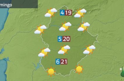 Así, la jornada de mañana, domingo, será algo menos fría a primeras horas porque suben las mínima. Aun así, hablaremos de frío y de fresco en la región. Las máximas no sufrirán cambios relevantes aunque localmente pueden subir un poco más. Llegarán nubes de tipo alto, sobre todo a la provincia de Cáceres. Momentáneamente podrán dejar los cielos velados, pero sin más. Tiempo más soleado cuanto más al sur. Viento flojo de dirección variable.