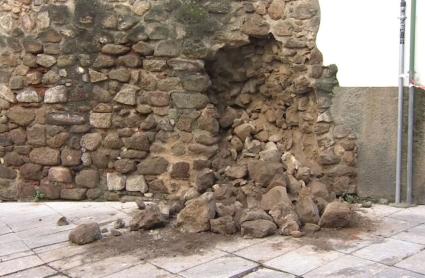 La caída continuada de agua en las últimas horas habría debilitado la estructura de la cara interna de la Muralla de Plasencia, provocando un desprendimiento hacia la calzada. Afortunadamente, no se han registrado daños personales.