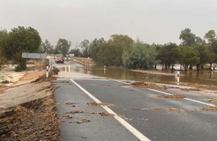 Las lluvias en Extremadura han provocado el corte de la carretera BA-074 en Granja de Torrehermosa, cerca del límite con la provincia de Córdoba. En concreto, en el kilómetro dos, a la altura de la localidad pacense, cerca del río Zújar. En este punto, se suele producir un salto de agua cuando hay precipitaciones abundantes.