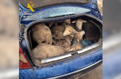En su interior encontraron crotales identificativos de animales, lo que levantó las sospechas de los agentes. Tras el registro del vehículo, hallaron en el maletero once borregos de los que los ocupantes no pudieron acreditar su legítima procedencia.
