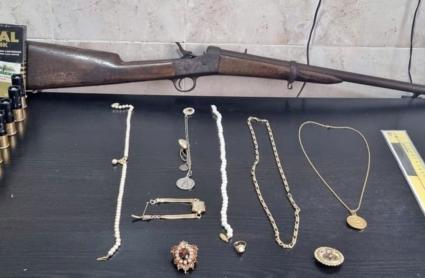 Posteriormente, con la colaboración de la Policía Nacional de Almendralejo, se le detuvo e intervinieron joyas, la carabina y la munición robada.