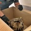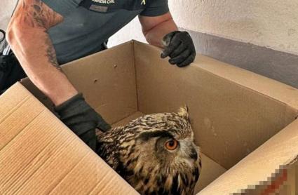 La Guardia Civil auxilia un Búho Real (Bubo bubo) que se encontraba desorientado y herido en el polígono industrial del término municipal pueblacorecense.