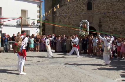 En Robledillo de la Vera, los danzantes acompañan a San Miguel en uno momento muy emotivo y esperado en el pueblo.