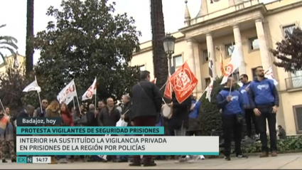 Los vigilantes de seguridad de las prisiones extremeñas protestan ante Delegación del Gobierno