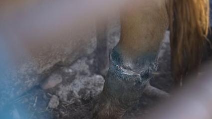 Isabel y Lidia curan un corte en la pata de una vaca