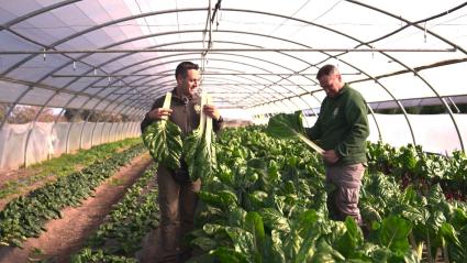 Chabeli y Antonio separan borregos bajo la supervisión de Boni