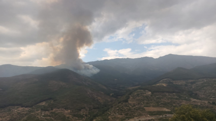 Se trata de un fuego dentro del término municipal de Tornavacas, en el Valle del Jerte. Todo parece indicar que ha sido un rayo el causante de estas llamas.