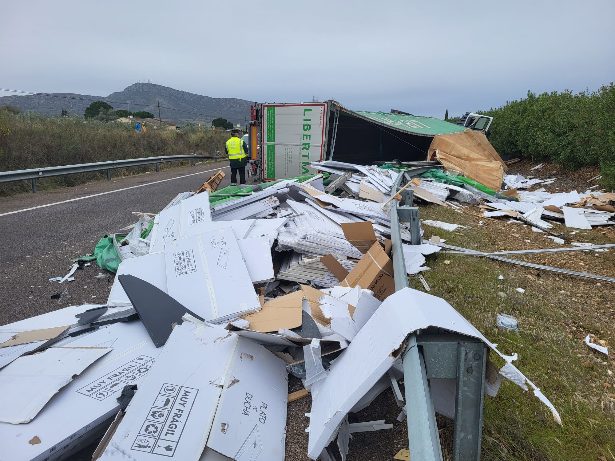 La Guardia Civil estima que los trabajos para reabrir el carril ahora cortado y restablecer la normalidad durarán al menos dos horas.