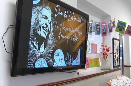 En Llerena, los alumnos y profesores del colegio Ntra. Señora de la Granada han rendido homenaje a Robe Iniesta. Con motivo de la Semana del Libro han llenado esta sala de trabajos que ponen en valor su poesía hecha música.