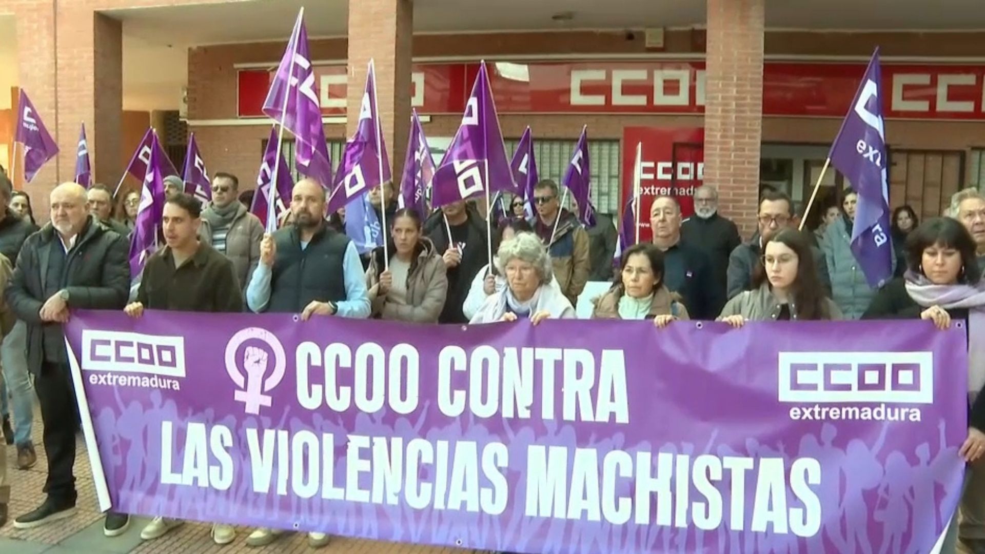 Concentración a las puertas de la sede de CCOO en Mérida con motivo del Día Internacional de la Eliminación de la Violencia contra la Mujer.