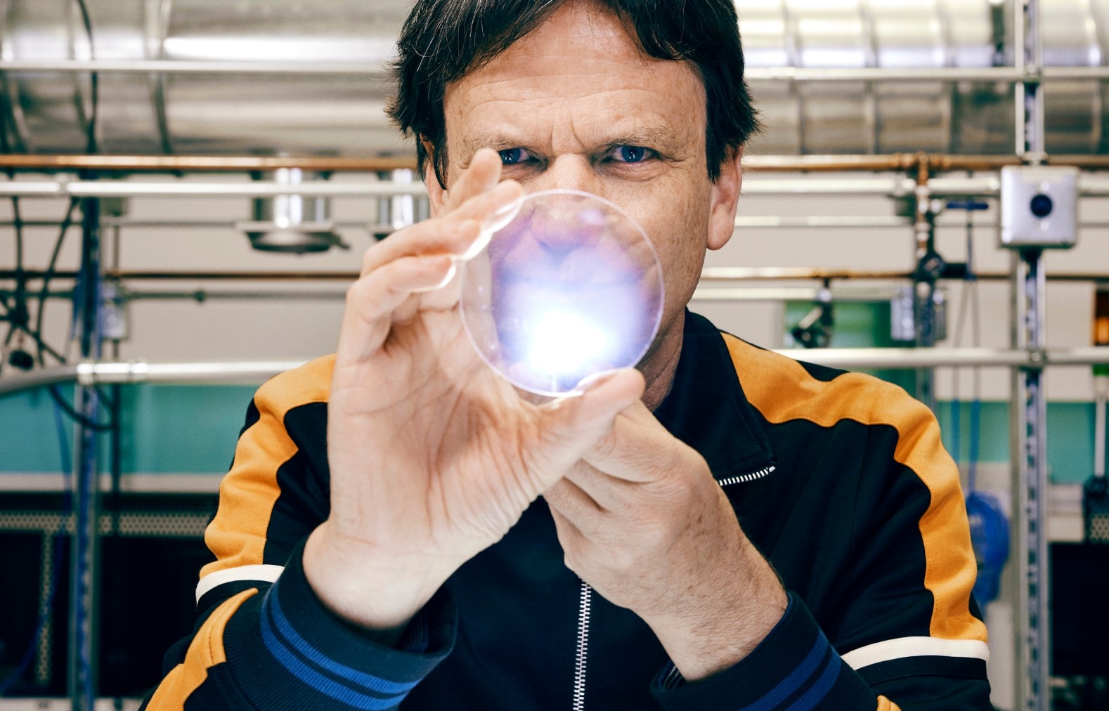 El fundador de la empresa, Martin Roscheisen, con una oblea de diamante
