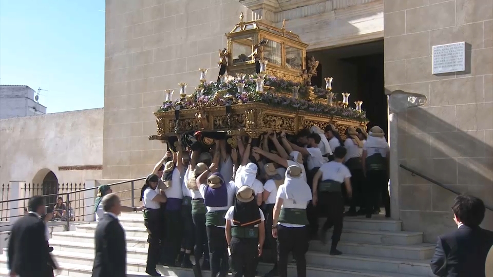 La procesión oficial del Viernes Santo partía a las 17:30 horas desde San Agustín. La hermandad pone en la calle sus dos pasos: Nuestro Señor Jesucristo Yacente y Nuestra Señora de las Lágrimas, reforzando el carácter solemne de la jornada.