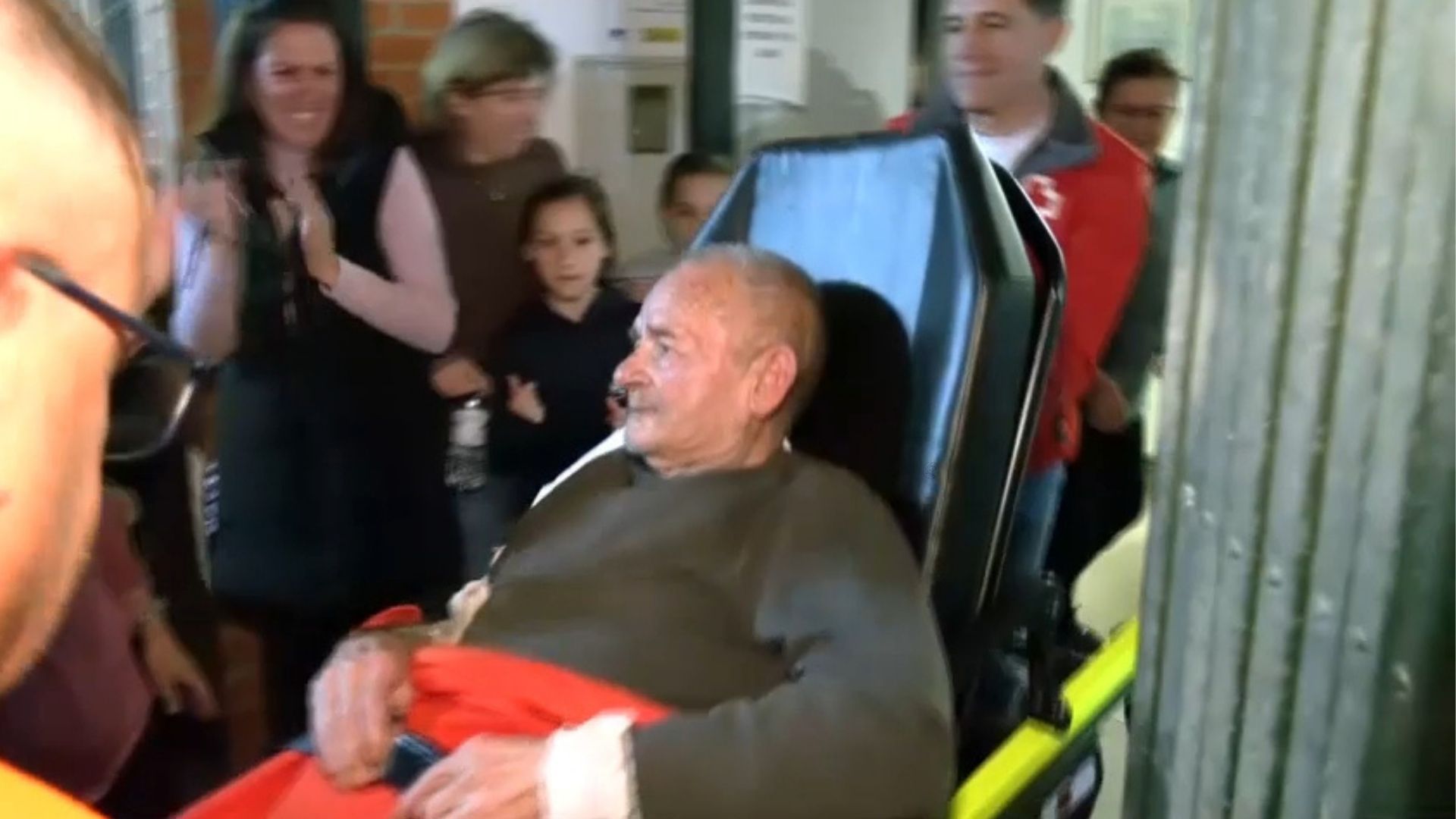 Sus vecinos, emocionados, lo han recibido entre aplausos y al grito de "¡Que viva España!".