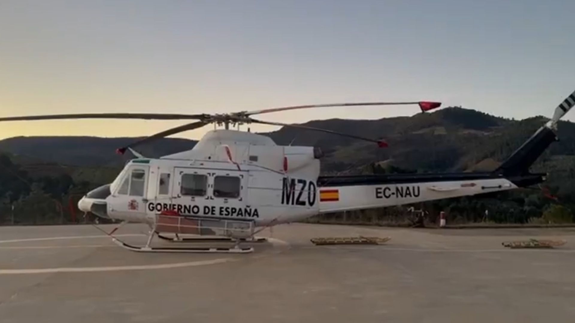 Helicóptero del Miteco que participa en la extinción del incendio de Losar de la Vera.