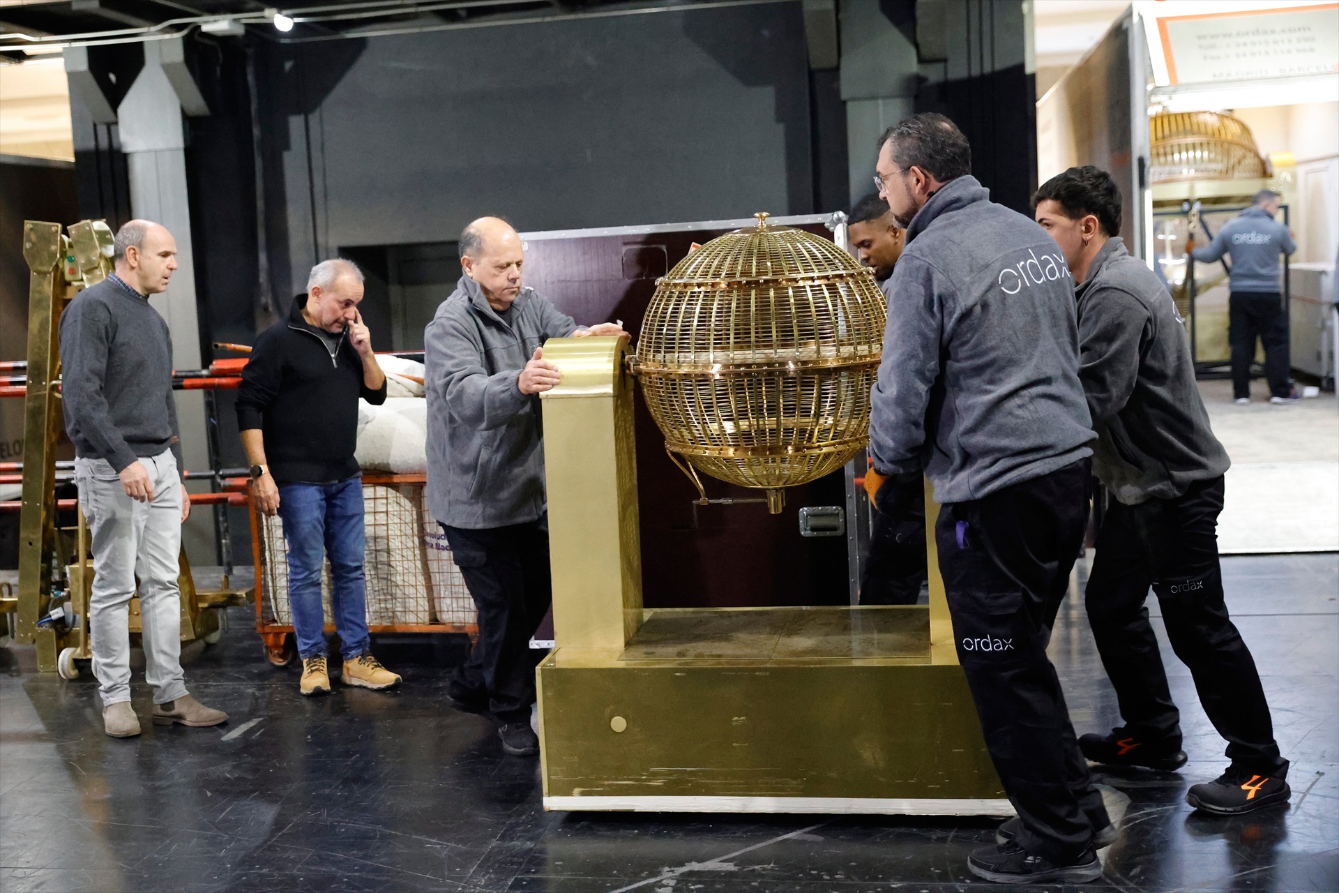 Los bombos y el resto de elementos que intervendrán en el sorteo extraordinario de la Lotería de Navidad 2025 el 22 de diciembre han llegado este viernes al Teatro Real de Madrid, según ha informado Loterías y Apuestas del Estado.