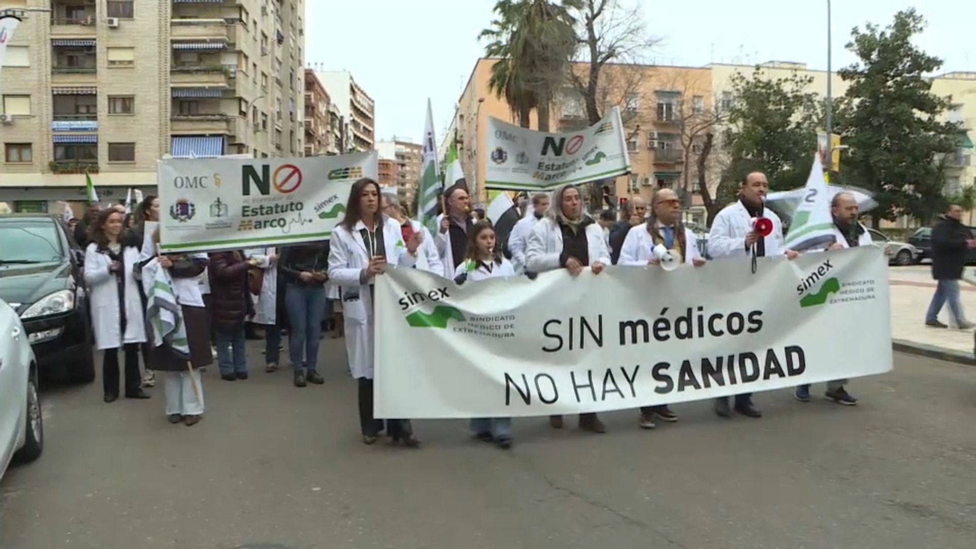 Los médicos se han manifestado este miércoles por las calles de Badajoz y Cáceres, convocados por Simex y los colegios de médicos, en el marco de la huelga contra el nuevo estatuto marco. Reclaman un estatuto propio que recoja las particularidades de la profesión y denuncian el deterioro del sistema sanitario.