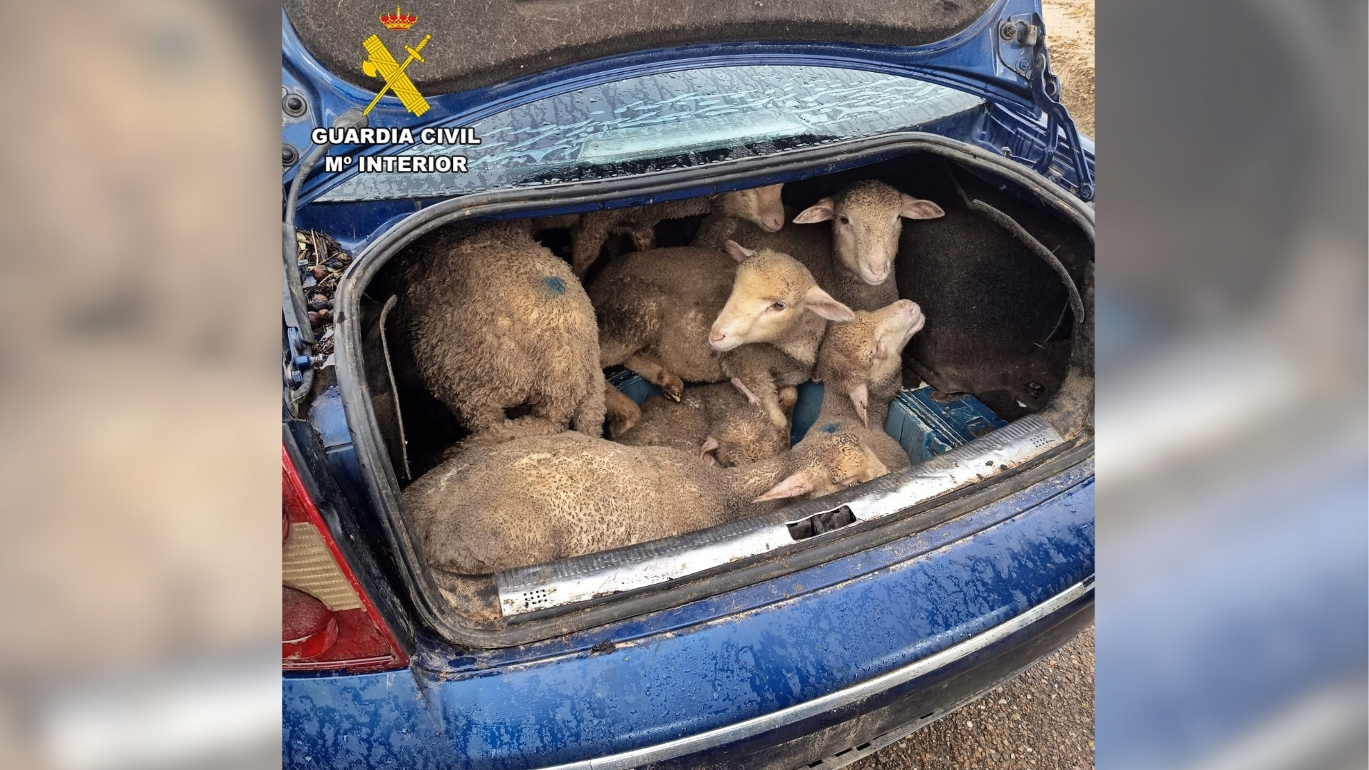 En su interior encontraron crotales identificativos de animales, lo que levantó las sospechas de los agentes. Tras el registro del vehículo, hallaron en el maletero once borregos de los que los ocupantes no pudieron acreditar su legítima procedencia.