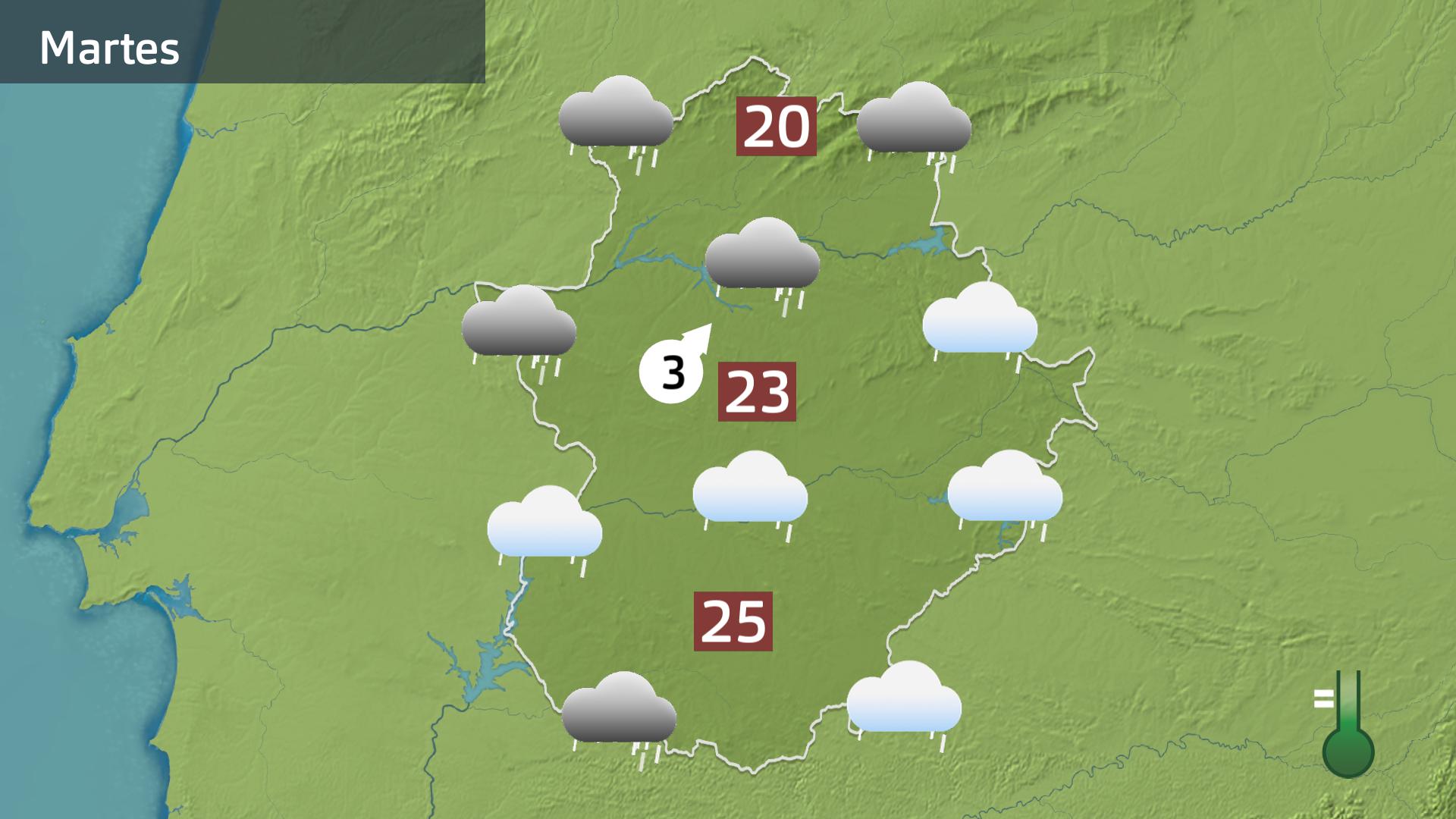 De hecho a partir de las 8 de la tarde se activarán avisos amarillos por lluvias en los Llanos de Cáceres, la sierra de San Pedro y el Tajo Internacional, por las riberas del Tajo y el Alagón y en todas las comarcas del extremo norte, además de en las sierras del sur de Extremadura.