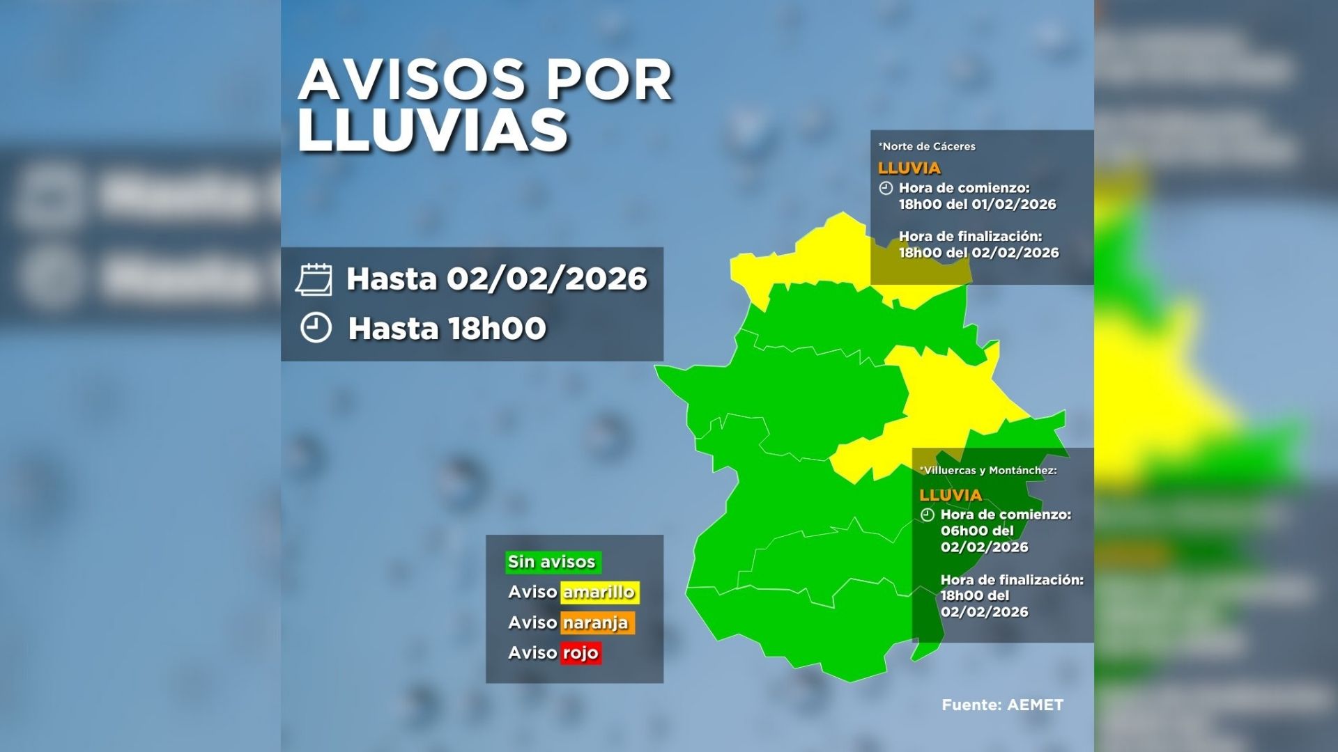 El Centro de Urgencias y Emergencias 112 Extremadura ampliará este lunes la alerta amarilla por lluvias en el norte de Cáceres a las zonas de Villuercas y Montánchez, ante la previsión de 15 litros por metro cuadrado en una hora.