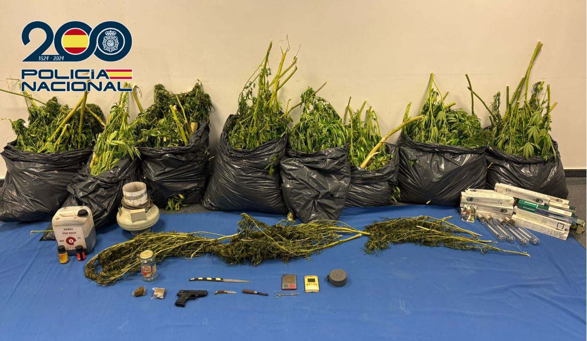 Tras varias vigilancias discretas, se identificó a la pareja que residía en el inmueble, quienes además realizaban pequeñas ventas de hachís. Con autorización judicial, se efectuaron dos registros domiciliarios, incautándose 45 kilos de marihuana, 80 gramos de hachís, una pistola simulada y diversos útiles para el tráfico de estupefacientes.