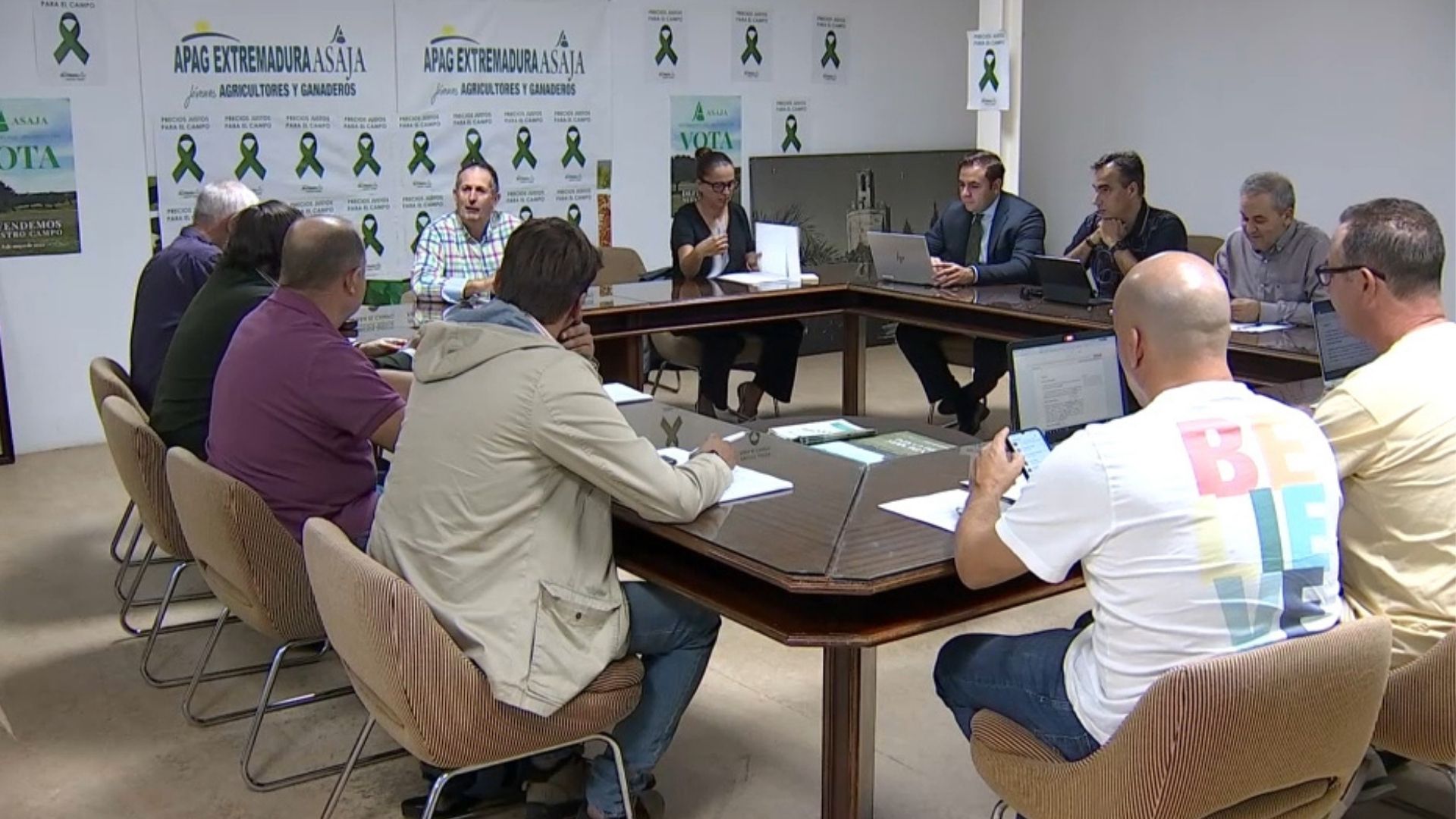 En la reunión de este lunes en Mérida han intervenido responsables de Apag Extremadura Asaja, Asaja Extremadura, Afruex, UPA-UCE Extremadura, Coag, Comisiones Obreras y UGT Extremadura.