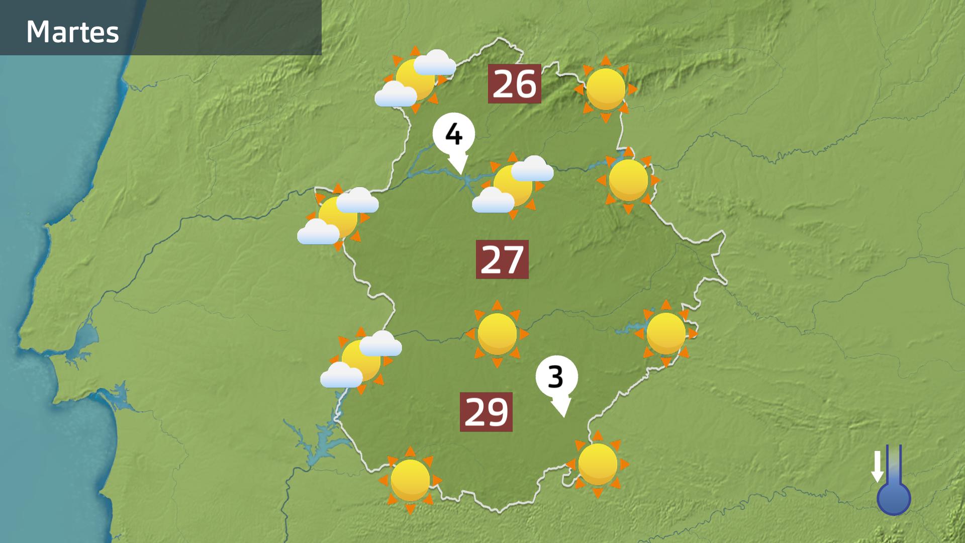 Ya en esta primera mitad de la mañana apenas aparecen nubes bajas en algunas zonas de sierra del extremo norte y habrá que esperar hoy hasta la segunda mitad de la tarde para que se nos cuelen algunas nubes más desde el Atlántico. Nubes medias y altas en este caso que comenzarán a ganar terreno desde el oeste y el noroeste. Aunque ni unas ni otras van a ser demasiado destacables y no impedirán que hablemos de un martes soleado en todas las comarcas.