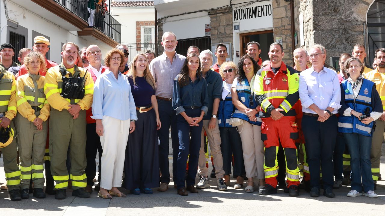 Durante su recorrido por localidades cacereñas como Rebollar, Cabezabellosa y Hervás, los monarcas han compartido las preocupaciones de los vecinos y han agradecido la labor de los equipos de extinción que han combatido el fuego en el gran incendio de Jarilla, que arrasó más de 17.400 hectáreas en tres comarcas del norte de Cáceres: Valle del Jerte, Trasierra-Tierras de Granadilla y Valle del Ambroz.