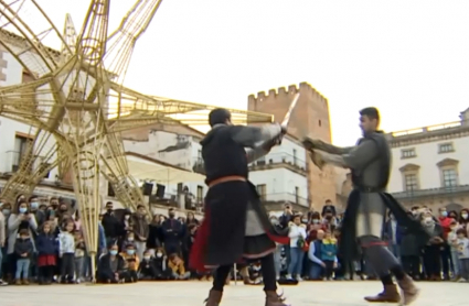 La recreación de lucha histórica de Los Fratres ha dejado con la boca abierta a las decenas de personas que han asistido a la exhibición de la asociación de recreacionistas. "Los Fratres de Cáceres nos dedicamos a la recreación histórica, en concreto a recrear a la milicia que el siglo XII guardaba la villa", explica Vicente Santos, fundador del grupo.