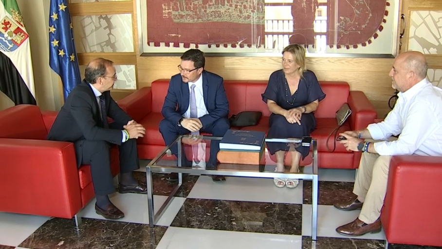Reunión entre el alcalde de Cáceres y el consejero de Economía y Empleo. Ambos han dicho que trabajarán para ampliar el Polígono de las Capellanías. Rafa Mateos ha pedido suelo industrial en Cáceres desarrollado como ya hay en otras ciudades como Mérida o Navalmoral de la Mata.