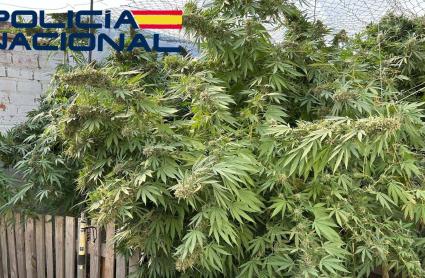 Plantación de marihuana encontrada en el patio de la vivienda.