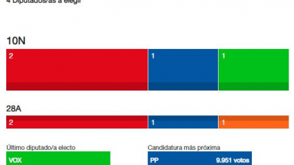 Sondeo: el PSOE logra cinco escaños, el PP sube a tres y Vox se queda con los dos de Ciudadanos