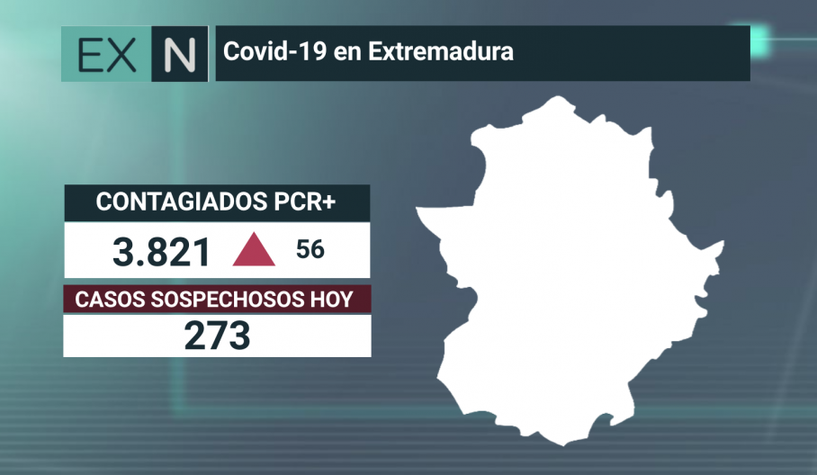 Extremadura ha registrado hoy 56 casos positivos confirmados por PCR y notifica al Ministerio de Sanidad cuatro nuevos brotes de Covid-19, el avanzado ayer en Quintana de la Serena, un brote en la barriada de Suerte de Saavedra de Badajoz originado por un bautizo, uno en Almoharín y otro en Bohonal de Ibor. Hay dos casos probables que aún no tienen confirmación.