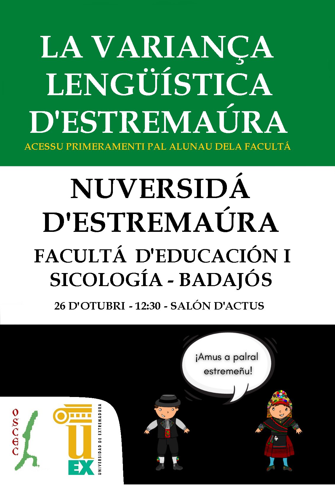 El encuentro, llamado "La variança lengüística d'Estremaúra/ La diversidad lingüística de Extremadura", será el próximo 26 de octubre, a las 12:30, en la facultad de Educación y Psicología de Badajoz.