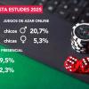 Los juegos de azar forman parte de la vida de muchos jóvenes. El 13% de los estudiantes de secundaria ha jugado a juegos de azar online, y casi el 21% lo ha hecho de forma presencial. Son datos superiores a estudios anteriores, con un incremento del 2%. Además, los chicos juegan más que las chicas: El 20% de ellos juega online y 29% de manera presencial y entre ellas, el 5% juega online y el 12% presencial.