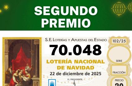 El número 70.048 ha resultado agraciado con el segundo premio del Sorteo Extraordinario de la Lotería de Navidad 2025, dotado con 1.250.000 euros por serie. El premio ha caído íntegramente en Madrid, concretamente en un punto de venta situado en la calle Barquillo, en pleno centro de la capital. Por tanto, no se ha vendido ningún décimo de este segundo premio del Sorteo de Navidad en Extremadura.