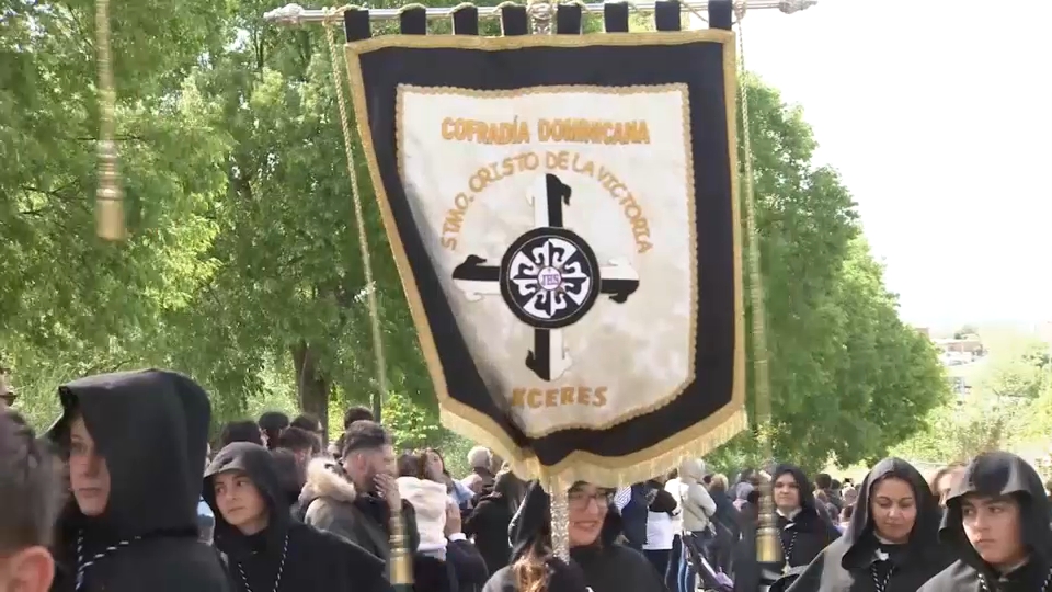 La Cofradía Dominicana del Santísimo Cristo de la Victoria, imagen tallada en el taller Arte Martínez en 2007, y Nuestra Señora del Rosario, obra de Manuel Luque Bonillo en 2016, ha salido de la parroquia San Juan Macías, en el barrio de La Mejostilla, con estas dos imágenes para realizar el itinerario más extenso de las procesiones cacereñas.