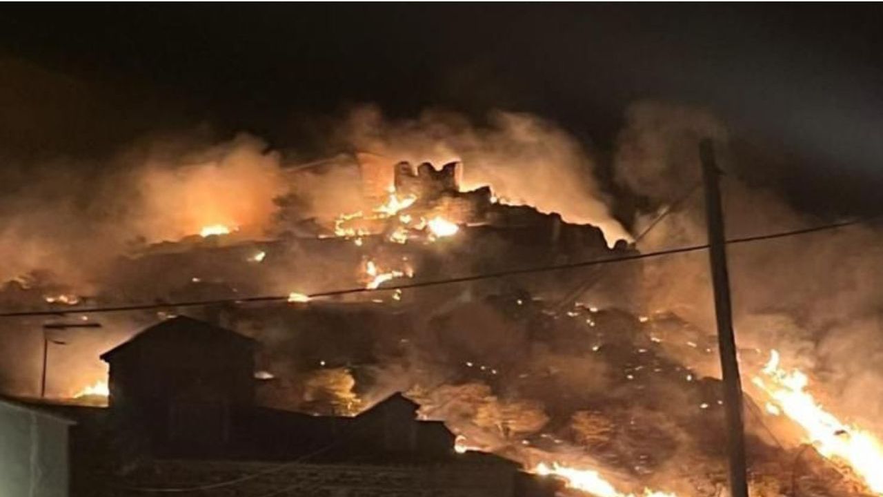 Las llamas devoran la ladera del castillo de Feria (Fuente: Redes Sociales)