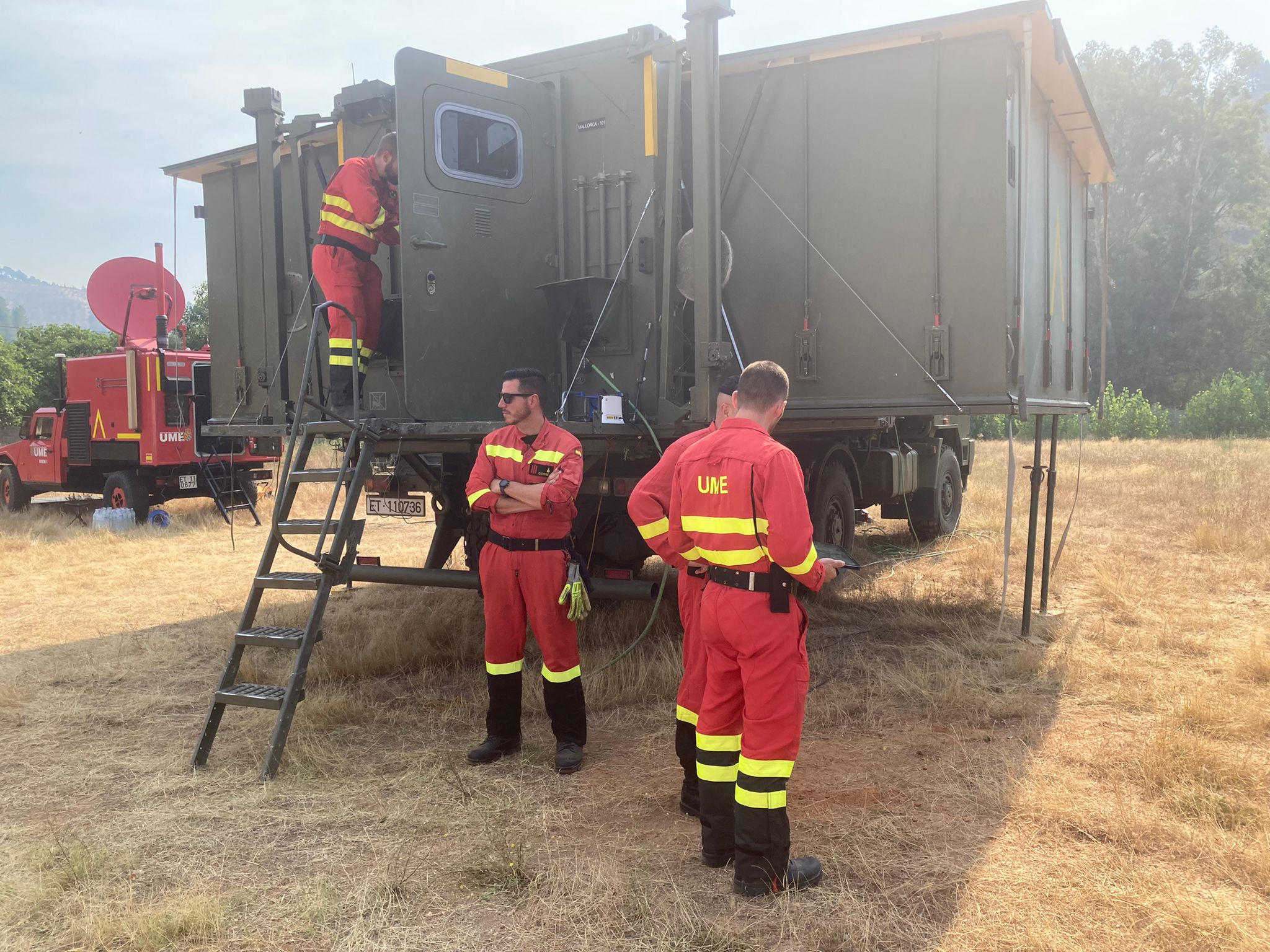 Efectivos de la UME en el puesto de mando de Vegas de Coria (Delia Martín)