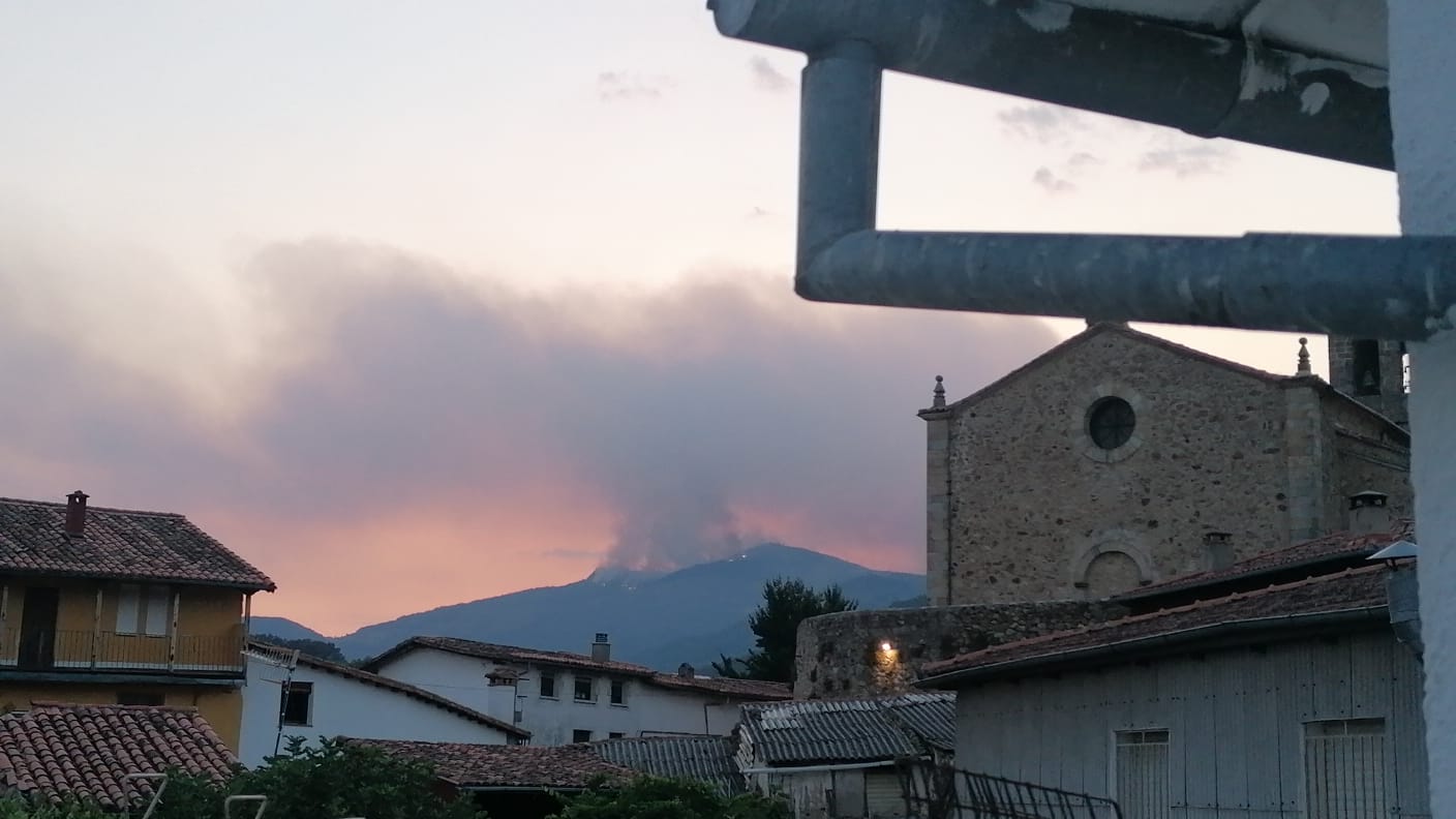 Imagen del incendio de Candelario desde Hervás esta mañana. (Fuente Redes Sociales)