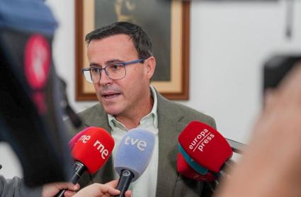 Miguel Ángel Gallardo, líder del PSOE extremeño, atiende a los medios en el inicio de una ronda de reuniones con los agentes sociales de cara a las Elecciones del 21 de Diciembre.