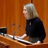 La presidenta en funciones de Extremadura, María Guardiola, durante la sesión constitutiva de la XII Legislatura de la Asamblea de Extremadura.