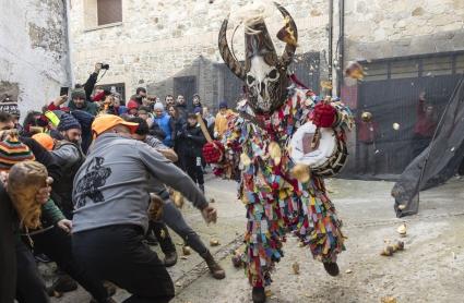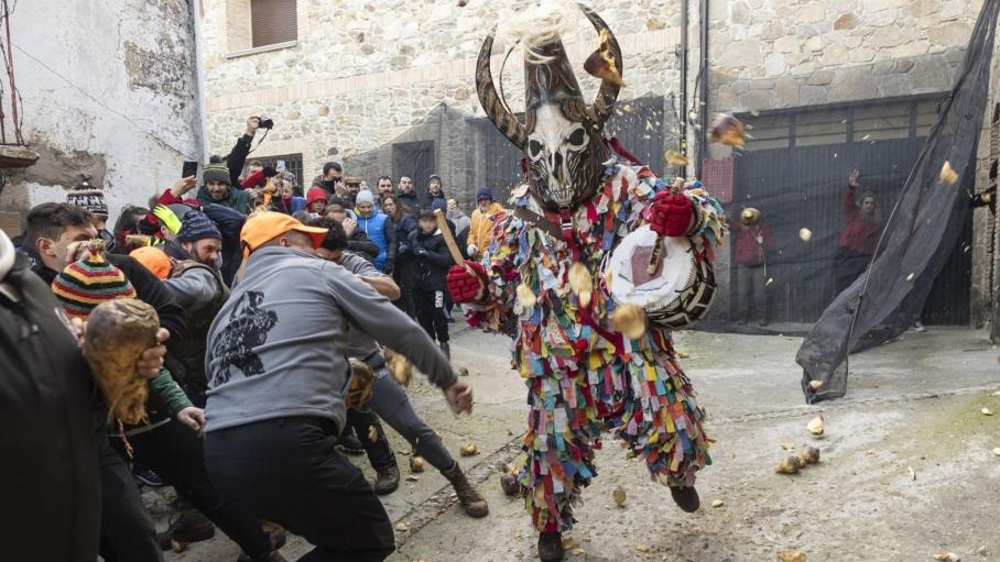 Decenas de personas lanzan nabos al Jarramplas, a 19 de enero de 2025, en Piornal, Cáceres