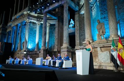 Las primeras palabras de la presidenta de Junta de Extremadura, María Guardiola, han sido para aludir al que ha sido el mayor incendio de la historia de la región “Ojalá nunca hubiera ocurrido. Ojalá el fuego no hubiera irrumpido en nuestros montes y en nuestras vidas. Pero ocurrió. Y por eso hoy mi deseo es que estas palabras sean memoria, abrazo y gratitud”.