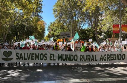 Más de 400 colectivos de la España Rural se manifiestan en Madrid bajo el lema “Salvemos el mundo rural agredido”. Son plataformas y asociaciones, algunas de ellas extremeñas, que luchan contra macroproyectos de energías renovables; de explotaciones mineras; de macrogranjas de ganadería industrial y de plantas de biogás. También quienes luchan por la protección del agua. Así lo explicaba uno de los manifestantes: "plataformas o coordinadoras distintas, una de ellas es el movimiento vecinal, otra es 'Aliente' contra las macrorenovables, las macrogranjas... contra todas aquellas agresiones que, en estos momentos, se están haciendo contra el mundo rural"".