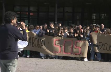 Bajo el lema “dignidad para la Laboral”, alumnos, profesores y trabajadores del IES Universidad Laboral de Cáceres han denunciado el mal estado de las instalaciones, un problema que —aseguran— arrastran desde hace años. Piden que se solucionen las deficiencias, como las goteras, cuanto antes. Y lo han hecho de una forma muy gráfica: protestando con mantas.