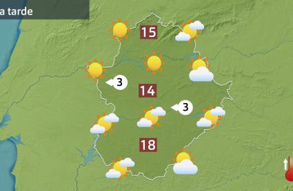 La jornada de hoy será estable en Extremadura. Aunque lleguen algunas nubes medias y bajas por las comarcas más orientales, dominará el ambiente soleado. Las temperaturas máximas se mantendrán similares a las de ayer, superando los 15ºC en la mayoría de las comarcas. No se descartan registros próximos a los 20 en las Vegas Bajas. El viento será del este, algo más intenso en las horas centrales del día.