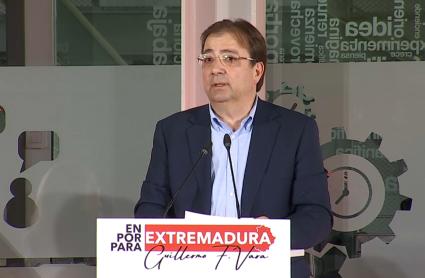 Presentación del programa económico del PSOE extremeño de cara a la próxima legislatura. Guillermo Fernández Vara ha destacado la apuesta por el empleo con los nuevos proyectos ligados a la economía verde, las renovables y el hidrógeno que "ya están llegando".